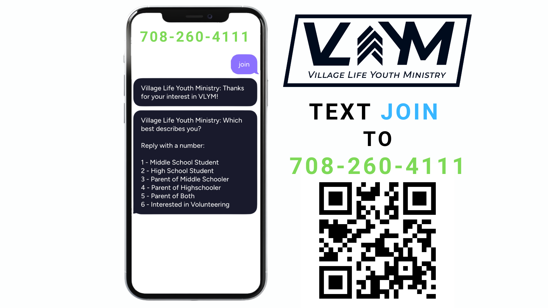 We would love for you join our Mass Texting service.To start text the work JOIN to 708-260-4111